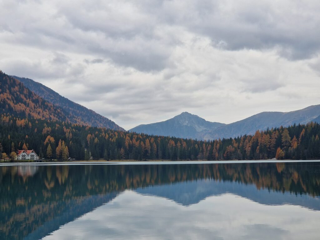South Tyrol offers endless beautiful hiking opportunities. An example of such a beautiful walk can be taken around Antholzer See. The water is emerald blue and you can see the mountains wonderfully reflected in the calm lake.
